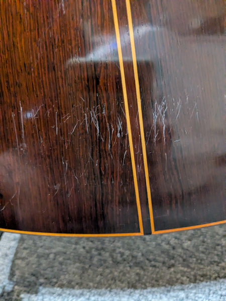 Please note the deeper ding in the front lower bout.