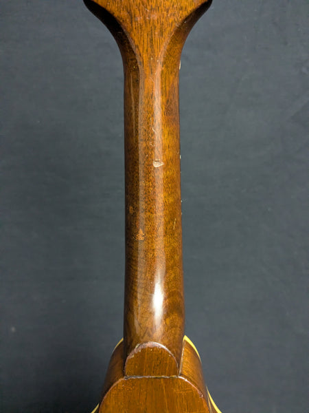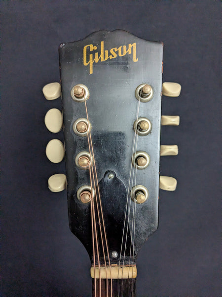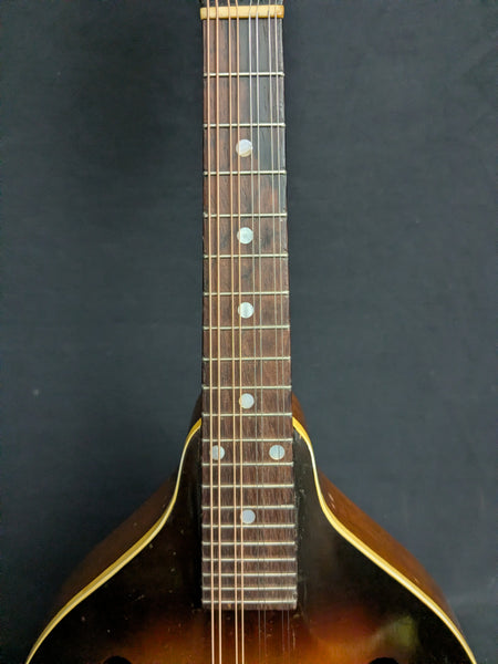 This vintage Gibson was made in Kalamazoo, MI, and designed to be a high quality, affordable instrument. Frets are in great shape with little to no signs of pitting. There is a repaired crack and visible holes from a prior pick-guard. Tone guard included! Other than the cosmetic issues, this mandolin plays very well.