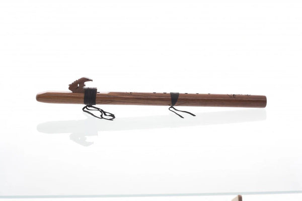 Made from walnut, a hardwood, the flute is sealed with non-toxic oils to protect it and give it a warm, resonant, full voice.