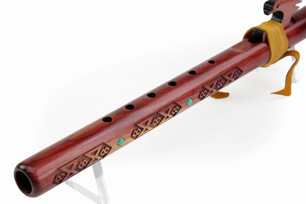 This flute is tuned to the key of 'C' minor but it can also be played in the relative major diatonic scale, in the key of 'E'. It's length is 16-inches / 40 cm.