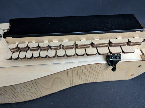 The Nerdy Gurdy BASIC body was completely re-engineered, combining Nerdy Gurdy and Nerdyharpa experience with computer simulations. The result is a unique body structure that integrates the acoustic concept of violins into a Hurdy Gurdy body. And it sounds awesome!