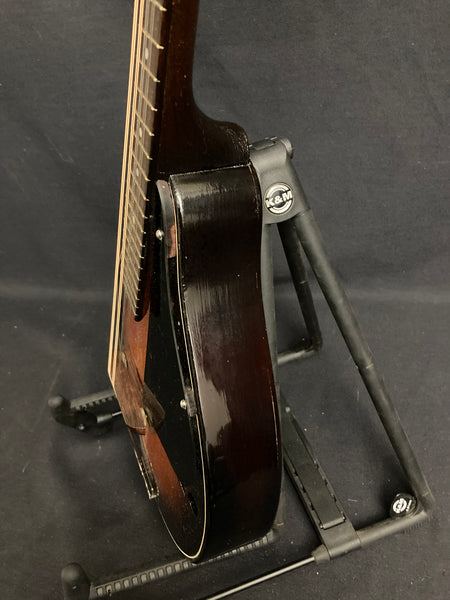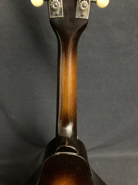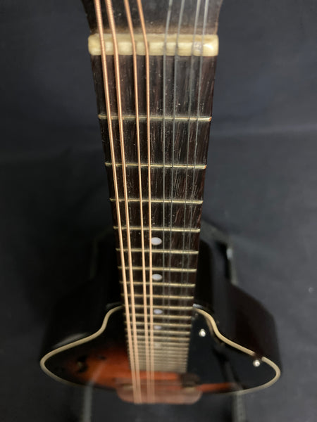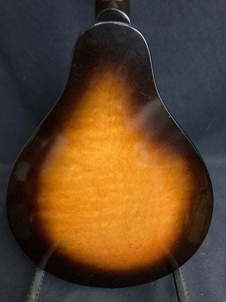 Solid woods throughout, including a fine spruce top and attractive curly maple back, produce a fine full sound at a fraction of the cost of a pre-war Gibson A model. Modestly priced in their day, Strad-O-Lins are known for sounding "better than they ought to" and are among the best values in a solid wood, American-made vintage mandolin.
