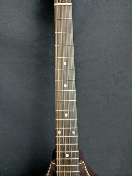 This octave mandolin is a great, easy to play instrument due to its radius fretboard and soft v neck. The solid spruce top makes this instrument project loudly with a warm, balanced tone.
