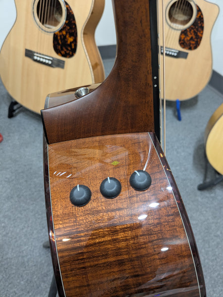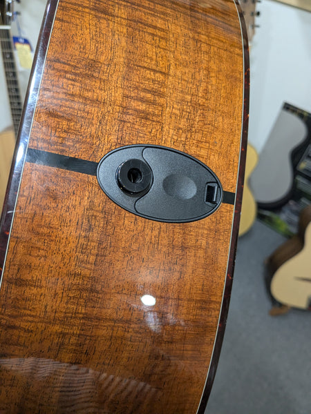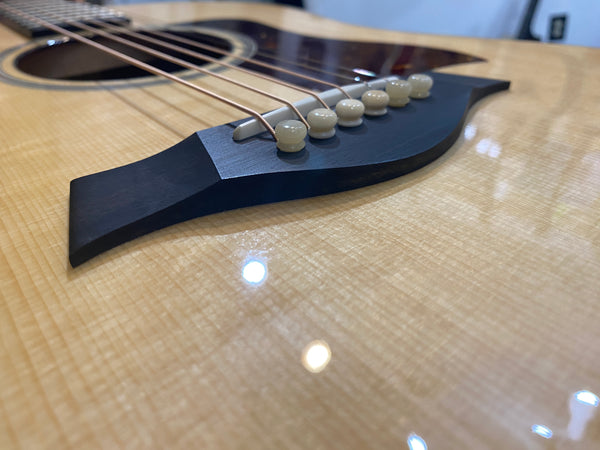 This beautiful custom Grand Pacific model features a solid spruce top and solid mahogany neck/back/sides. Expression system electronics. Well cared for and free from any dings, dents, or scratches of significance. Frets are in good condition with plenty of life left!